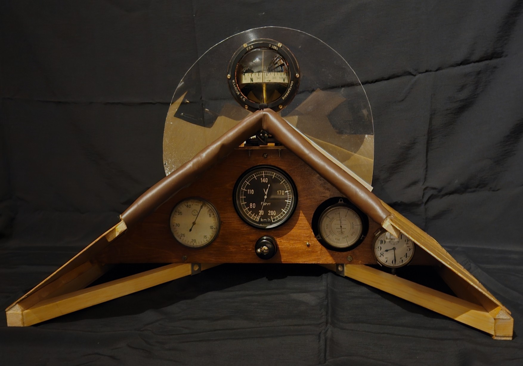 The base consists of a piece of original wooden propeller, which has been polished with shellac.