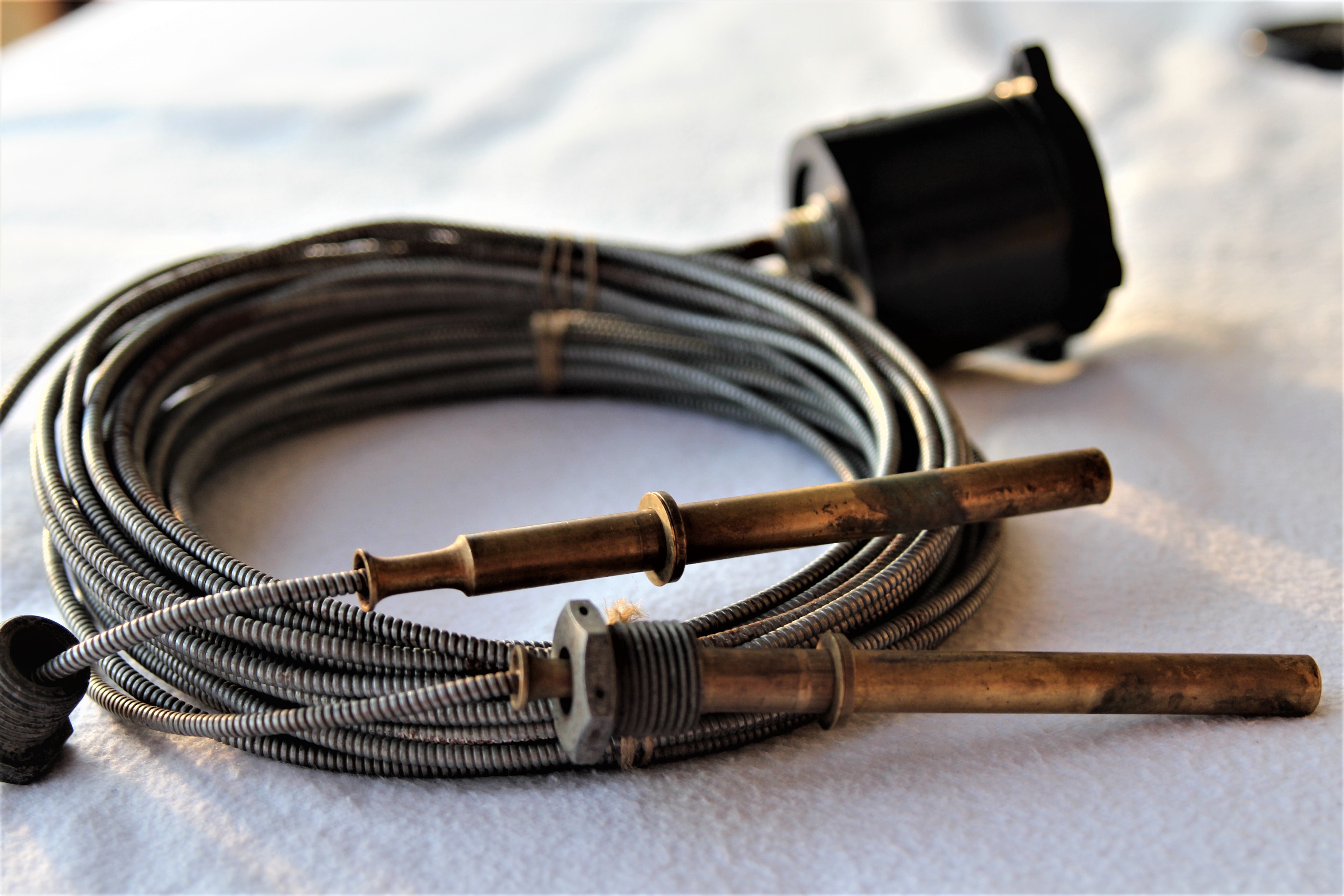 Fl.20331-6 Doppel- Dampfdruckthermometer, 1942 Bezeichnung: Doppel- Dampfdruckthermometer Anforderungszeichen: Fl.20331-6 (6m Messleitung) Gerät-Nr.: 127B 1048-1 Messbereich: 2 x 0 – 160°C Hersteller: J.C. Eckardt, Stuttgart-Bad Cannstatt Baujahr: 1942 Funktionsweise