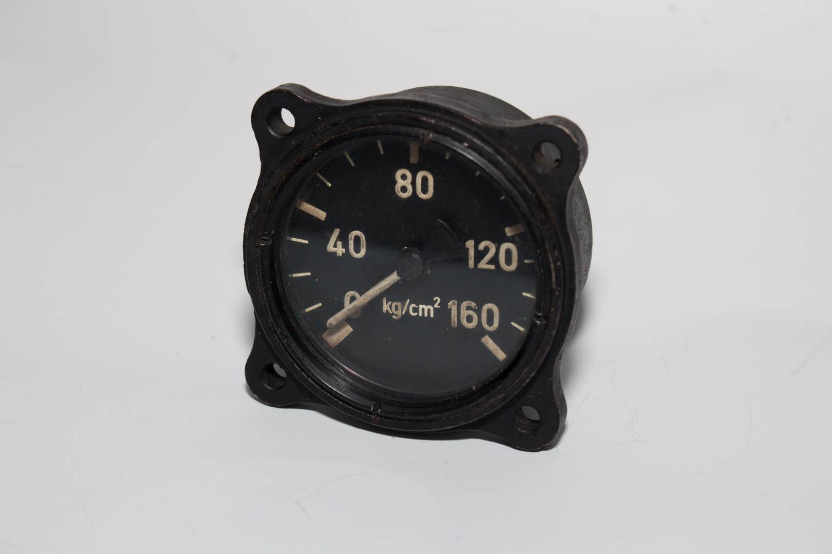 Fl.20516-3 Einfach-Druckmesser, ca. 1943 Bezeichnung: Einfach-Druckmesser Anforderungszeichen: Fl.20516-3 Gerät-Nr.: 127-1075 A-1 Baumuster: Schäffer & Budenberg Messbereich: 0 – 160 Kg/cm² Hersteller: Schäffer & Budenberg, Magdeburg-Buckau Baujahr: ca. 1943 Eingebaut in: Funktionsweise