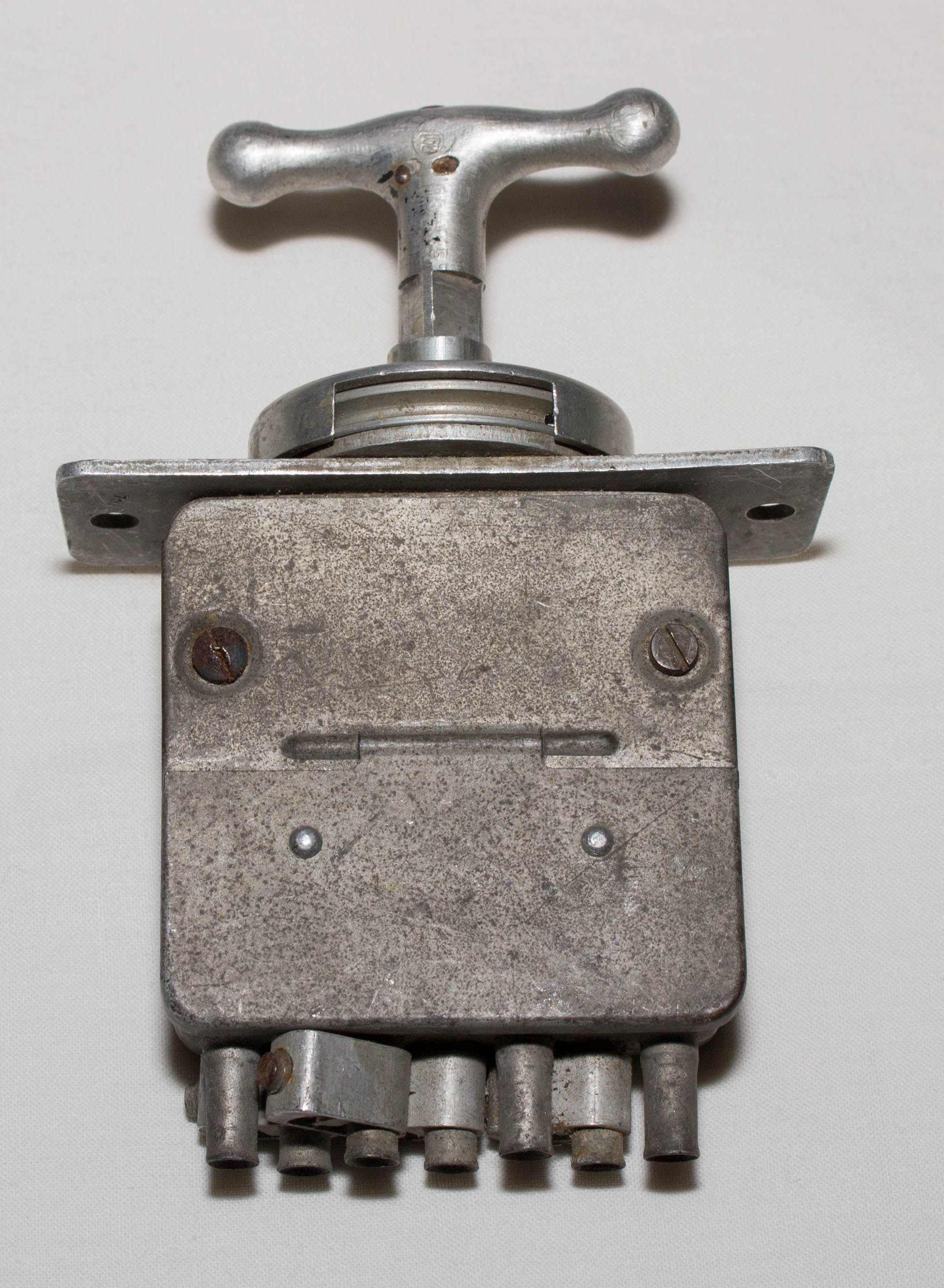 - Besonderheit: Schalterhebel ist gekoppelt mit Seilrolle für Bowdenzug. Übertragung der Schaltposition mittels Bowdenzug zum Empfänger (Anlasser).