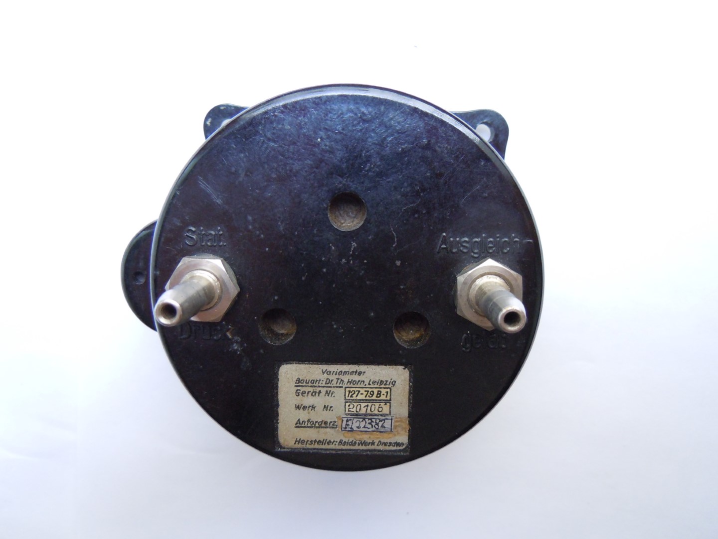 Fl.22382 Variometer, 1942 Bezeichnung: Variometer Anforderungszeichen: Fl.22382 Baumuster: 127-79 B-1 Messbereich: +/- 0 – 15 m/s Hersteller: Balda Werke, Dresden Baujahr: ca. 1942 Funktionsweise