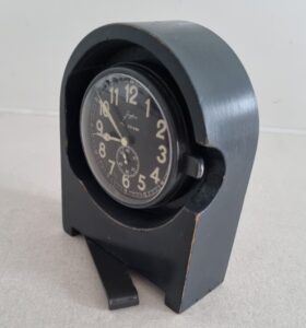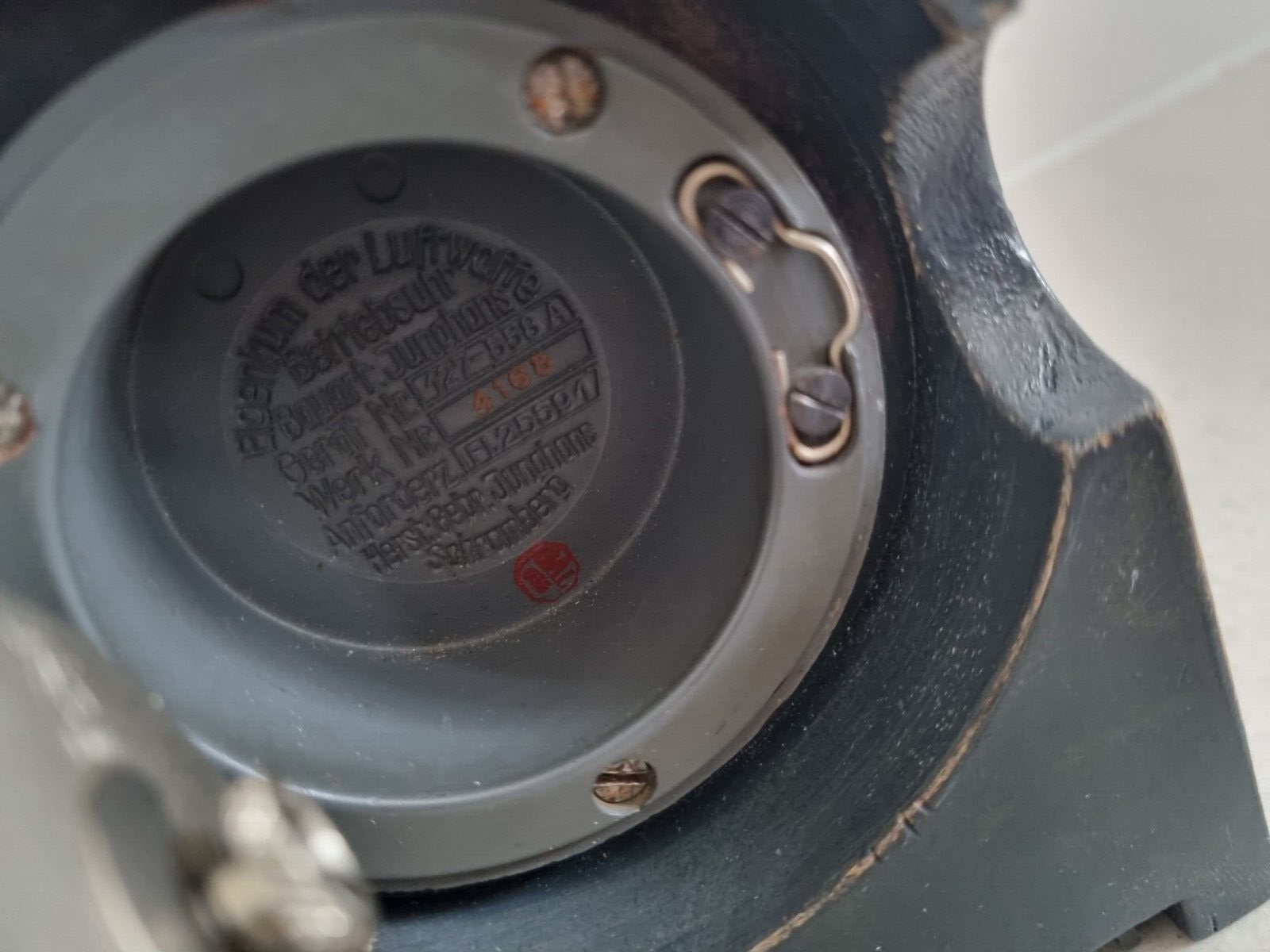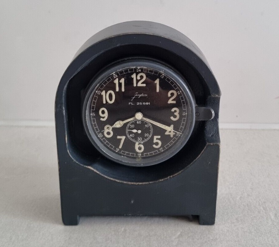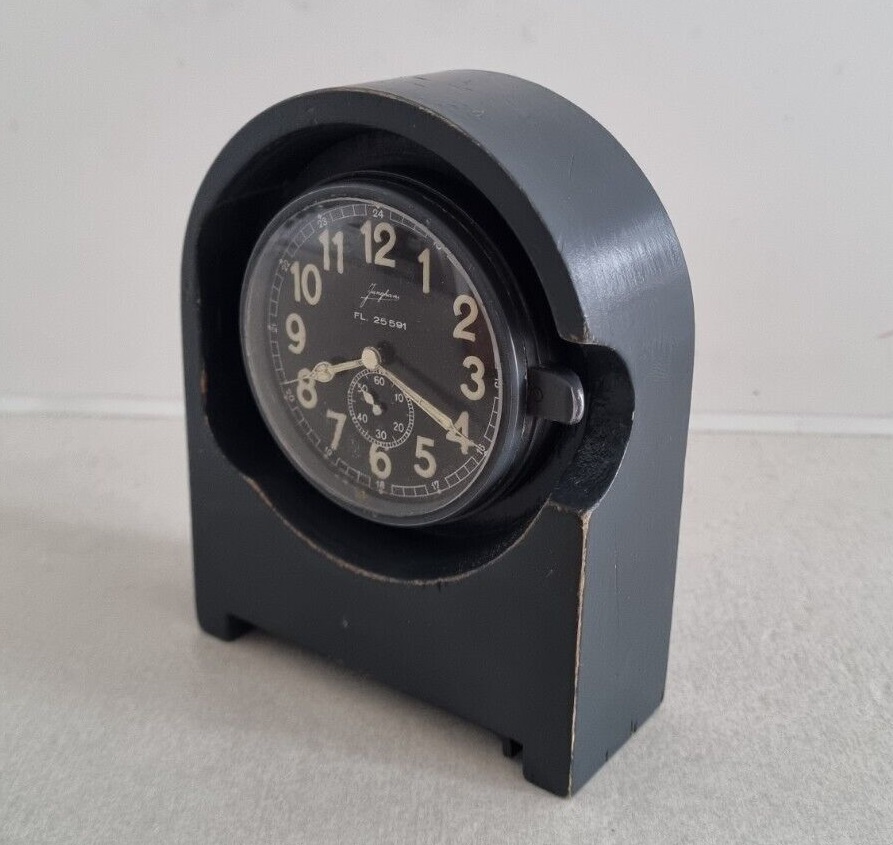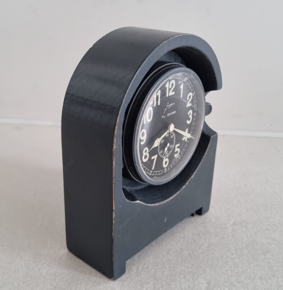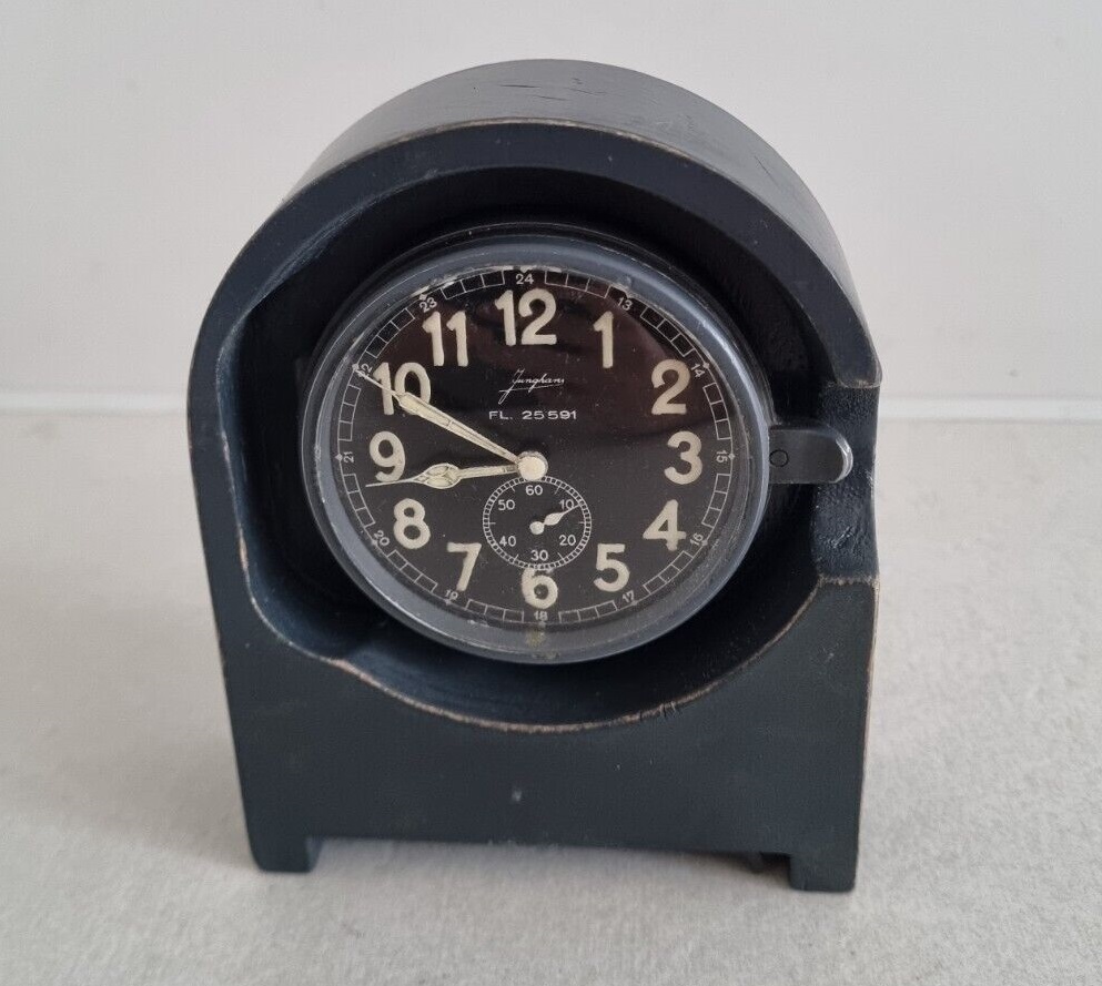 Fl.25591 Betriebsuhr, 1943 Bezeichnung: Betriebsuhr Anforderungszeichen: Fl.25591 Gerät-Nr.: 127-558 A Uhrwerk: Junghans, 8-Tage-Werk Hersteller: Gebr. Junghans, Schramberg Baujahr: 1943 Verwendung: Betriebsuhr für Schreibstuben, Funkerplätzen u.a. Funktionsweise
