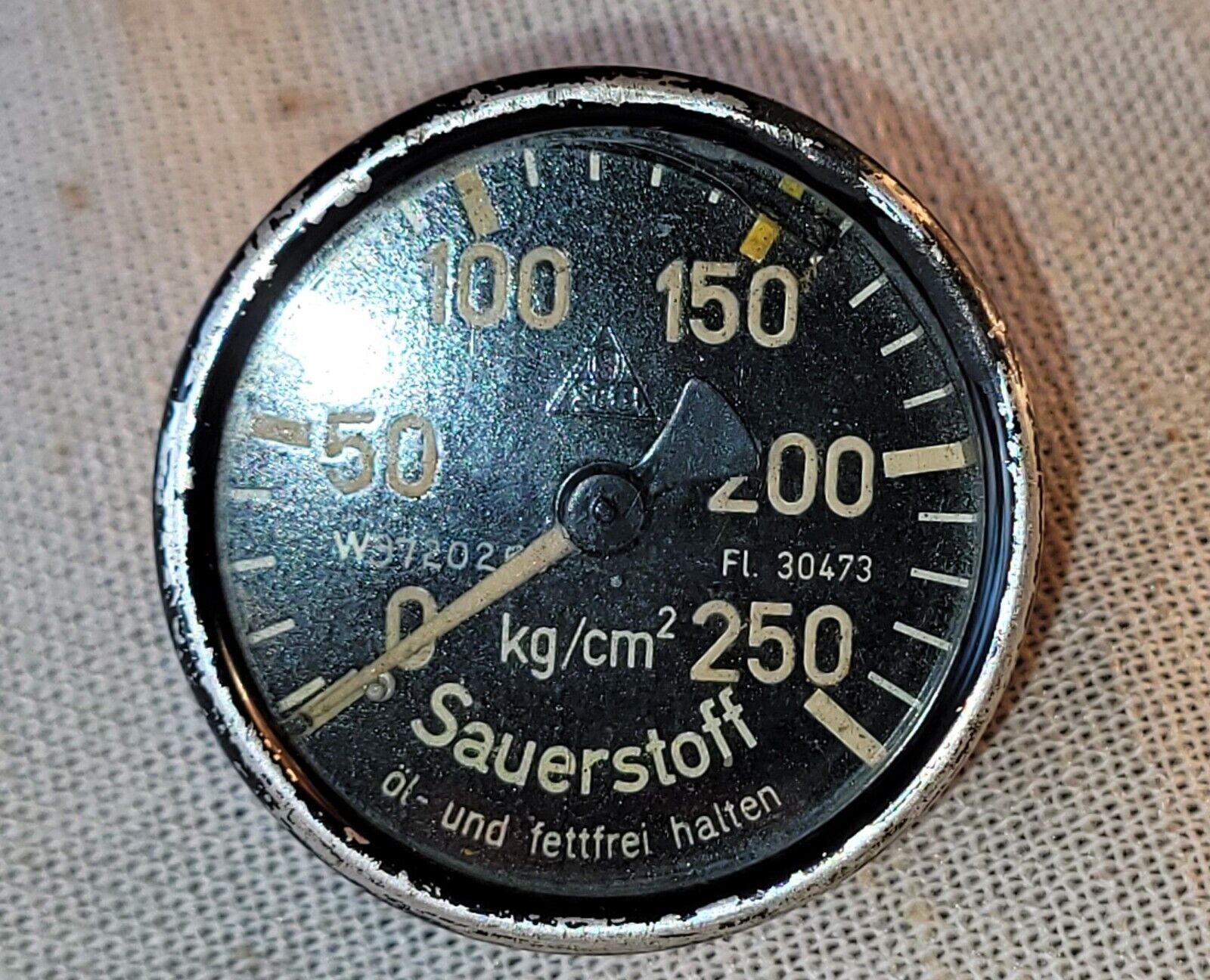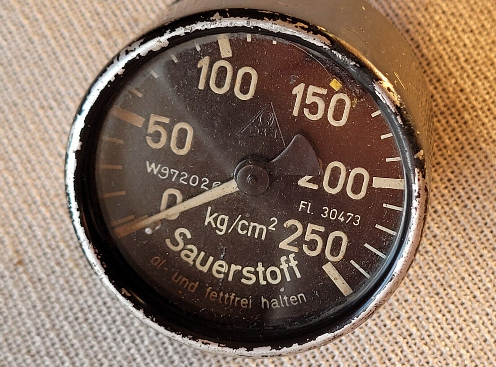 Fl.30473 Sauerstoffdruckmesser, 1941 Bezeichnung: Sauerstoffdruckmesser Anforderungszeichen: Fl.30473 Messbereich: 0 – 250 kg/cm² Hersteller: Schäffer & Budenberg, Magdeburg-Buckau Baujahr: ca.1941 Verwendung: z.B. tragbarer Höhenatmer,Fl.30456-1