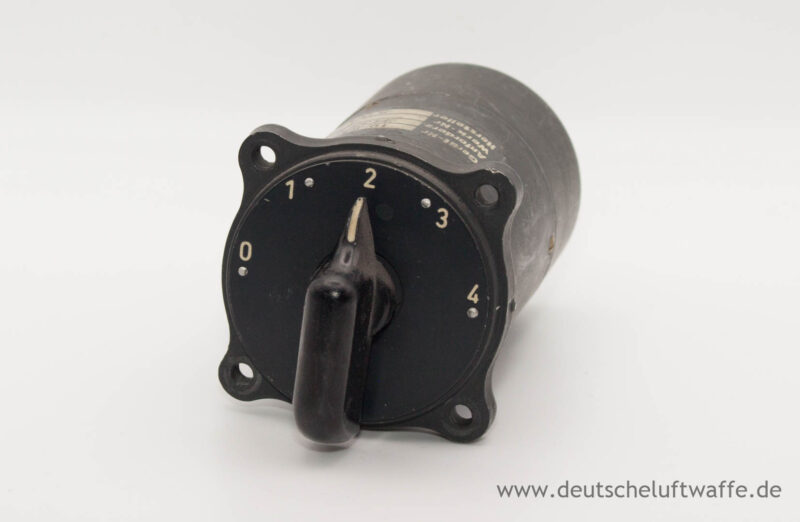Fl.32336-1 Messstellenumschalter für 4 Meßstellen 1944 Bezeichnung: Messstellenumschalter, für 4 Meßstellen Anforderungszeichen: Fl.32336-1 Gerät-Nr.:19-5807 A-1 Hersteller: Stotz-Apparatebau-GmbH – Eberbach a./N Baujahr: ca. 1944 Eingebaut in: Junkers Ju 52, Messerschmitt Bf 110