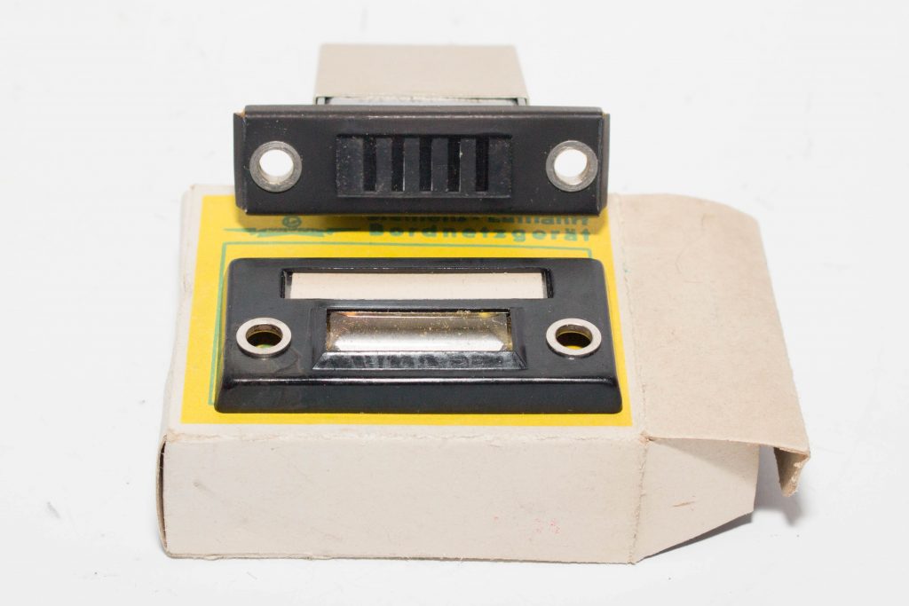 Fl.32525-4 Gitterschauzeichen Bezeichnung: Gitterschauzeichen Anforderungszeichen: Fl.32525-4 Gerät-Nr.: 126-707 DF 2 Baumuster: LMA 1/1 Hersteller: LGW-Hakenfelde, Berlin Baujahr: ca. 1944 Eingebaut in: zahlreichen Flugzeugbaumustern Zubehör: Frontblende mit Lupenglas