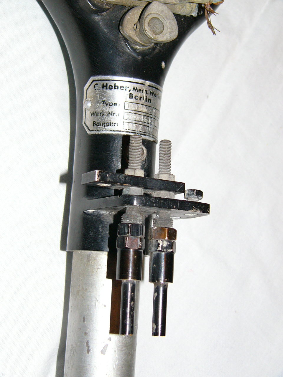 Fl.47901 Steuerknüppel mit Knüppelgriff KG 2B, 1938 Bezeichnung: Steuerknüppel mit Knüppelgriff KG 2B Anforderungszeichen: Fl.47901 Baumuster: KG 2B Hersteller: L.Heber, Mechanische Werkstätten, Berlin Baujahr: 1938 Eingebaut in: z.B. Junkers Ju 87A
