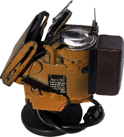 Fl.52100 Revi C/12 E, 1943 Bezeichnung: Reflexvisier Revi C/12 E Anforderungszeichen: Fl.52100 Gerät-Nr.: 127-22 E Baumuster: Revi C/12 E Hersteller: OMW Baujahr: ca.1943 Zubehör: Glühlampe, Fl.32786-1, Reflexglas, Fl.52108-4 und Farbglas, Fl.52160-1 Funktionsweise