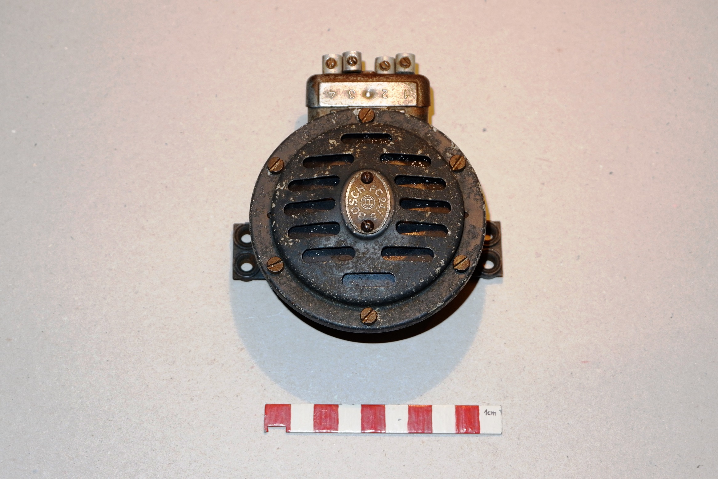 Fl E.680501 Bosch-Horn, 1943 Bezeichnung: Bosch-Horn Anforderungszeichen: Fl E.680501 Gerät-Nr.: 19-6805 A Baumuster: FC 24/5 Hersteller: Robert Bosch A.G., Stuttgart Baujahr: ca. 1943 Eingebaut in: im Führerraum diverser Flugzeugbaumuster als akustisches Warngerät