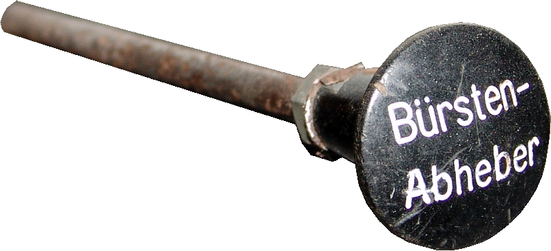 Fl.XXX Betätigung zur Bürstenabhebung Bezeichnung: Betätigung zur Bürstenabhebung Anforderungszeichen: Fl.XXX Gerät-Nr.: 190-721.17 Baumuster: Messbereich: Hersteller: Baujahr: Eingebaut in: Focke-Wulf Fw 190 Funktionsweise