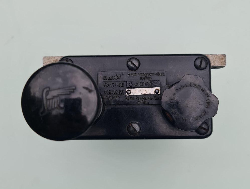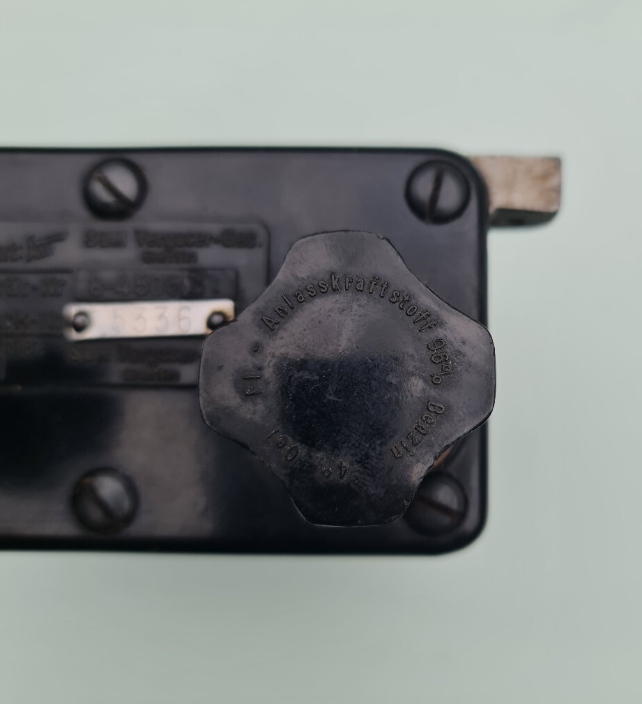 Fl.XXX Einspritzpumpe für Anlasskraftstoff, 8-4506 Bezeichnung: Einspritzpumpe für Anlasskraftstoff Anforderungszeichen: Fl.XXX Gerät-Nr.: 8-4506 Hersteller: SUM Vergaser Gesellschaft, Carl Wirsum & Co., KG, Berlin Baujahr: ca. 1941