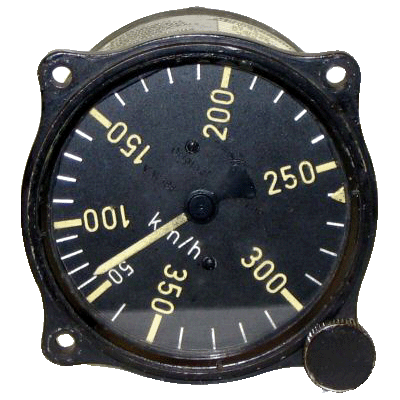 - Der Fahrtmesser mit der „sternförmigen“ Anordnung der Ziffern und dem Einstellrad ist eine Besonderheit. Es war eine Art Navigationshilfe. Der Pilot hat das Zifferblatt so eingestellt, dass der Zeiger beim Erreichen der gewünschten Geschwindigkeit waagerecht stand. Da dieser Fahrtmesser links neben dem Horizont und das Variometer rechts daneben war, bildeten dann die Zeiger von Fahrtmesser und Variometer eine Linie mit dem Horizontbalken, wenn die Maschine bei Erreichen der gewünschten Geschwindigkeit im Horizontalflug flog. Der Pilot sah also mit einem Blick, dass er die Geschwindigkeit hielt und die Höhe