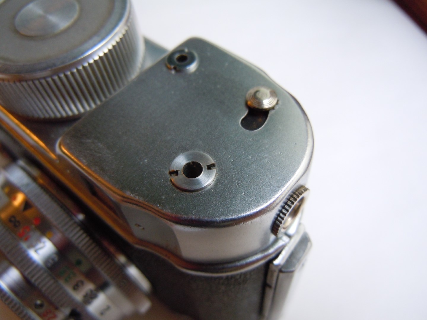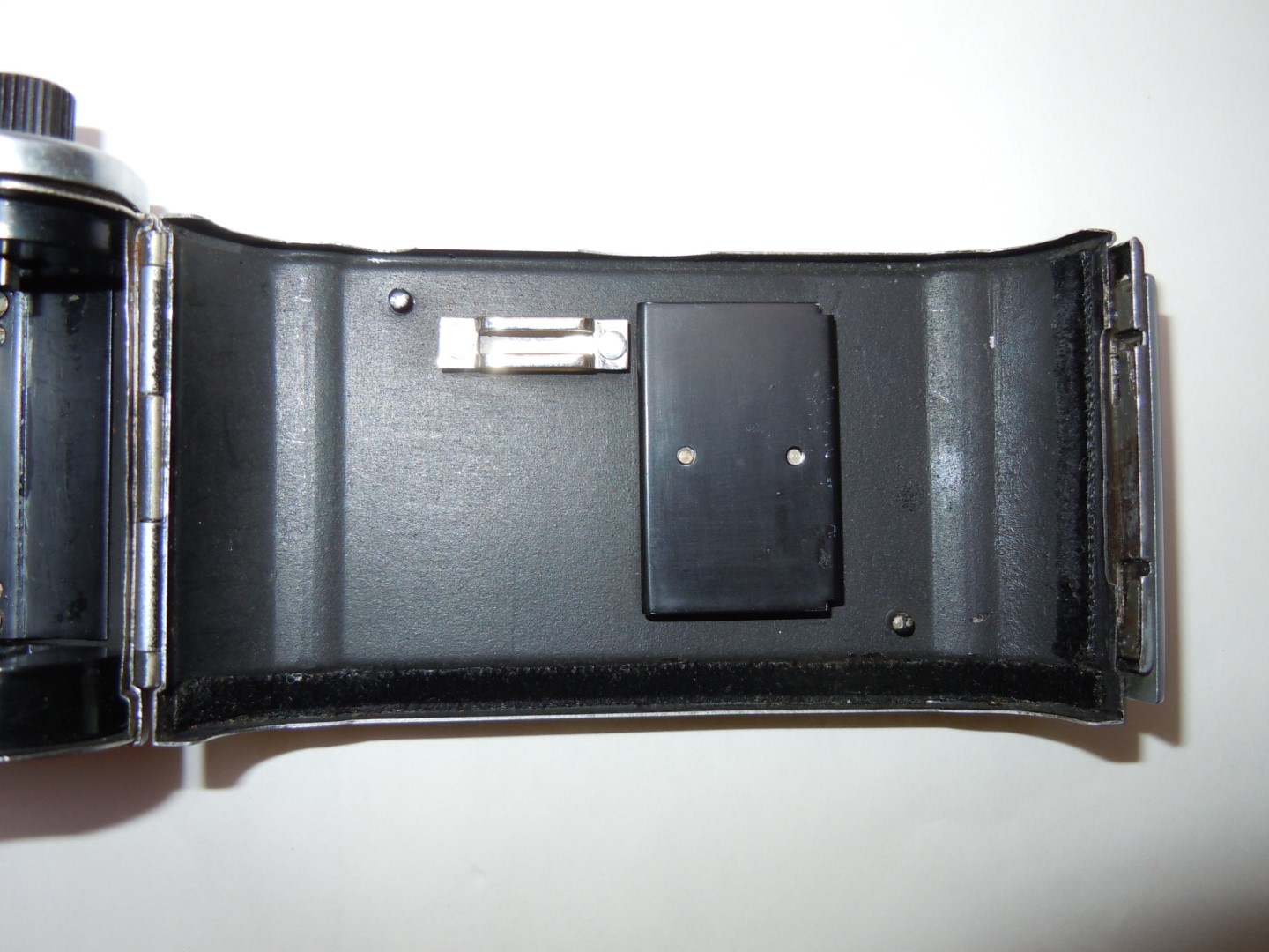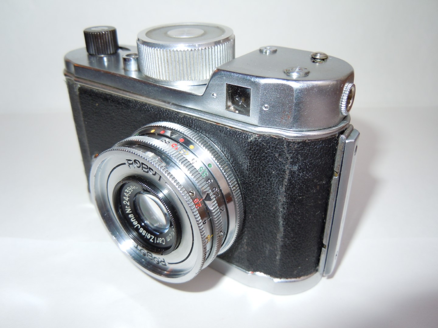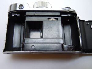 - Objektiv: „Tessar“, f= 3 3/4cm / 1 : 2,8, Carl Zeiss, Jena, Werknummer: 2443946, Material: Buntmetall, verchromt