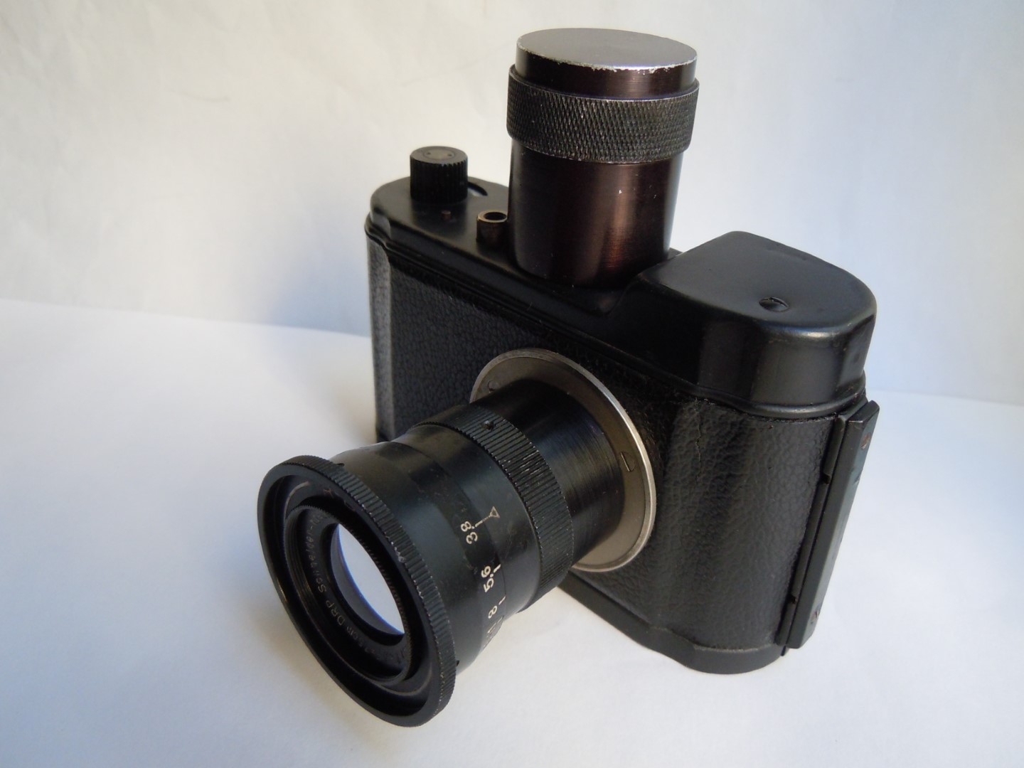 - Objektiv: „Tele-Xenar“, f: 3,8 / F= 7,5, Schneider-Kreuznach, Werknummer: 1818647, Material: Aluminium, schwarz lackiert