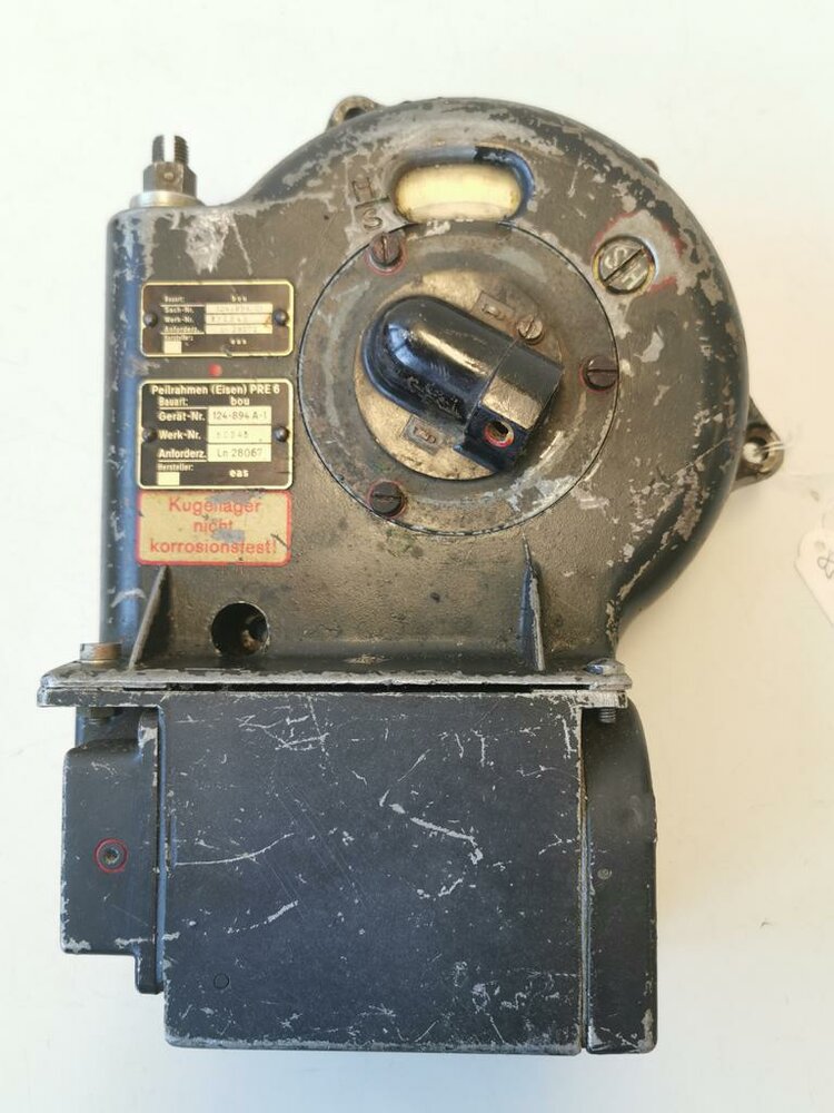 Ln.28067 Peilrahmen PRE 6, 1943 Bezeichnung: Peilrahmen (Eisen) PRE 6 Anforderungszeichen: Ln.28067 Gerät-Nr.: 124-894 A-2 Baumuster: PRE 6 Hersteller: eas = Siemens & Halske A.G., Berlin (Bauart: bou) Baujahr: ca. 1943 Verwendung: Bestandteil des Bordpeilgerätes Peil G6