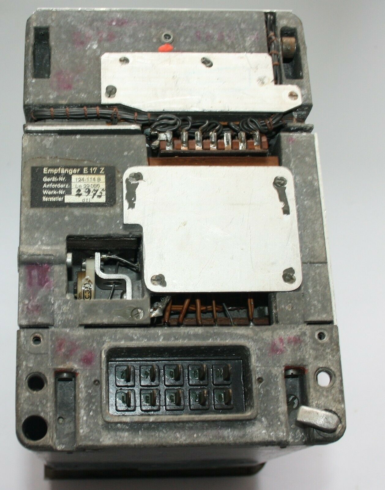 Ln.29086 Empfänger E 17 Z des Bordfunkgerät FuG 17 Z, 1944 Bezeichnung: Empfänger des Bordfunkgerät FuG 17 Z Anforderungszeichen: Ln.29086 Gerät-Nr.: 124-114 B Baumuster: E 17 Z Hersteller: dtl = Dr. Georg Seibt A.G., Berlin Baujahr: ca. 1944 Bemerkung: Bestandteil des FuG 17 Z