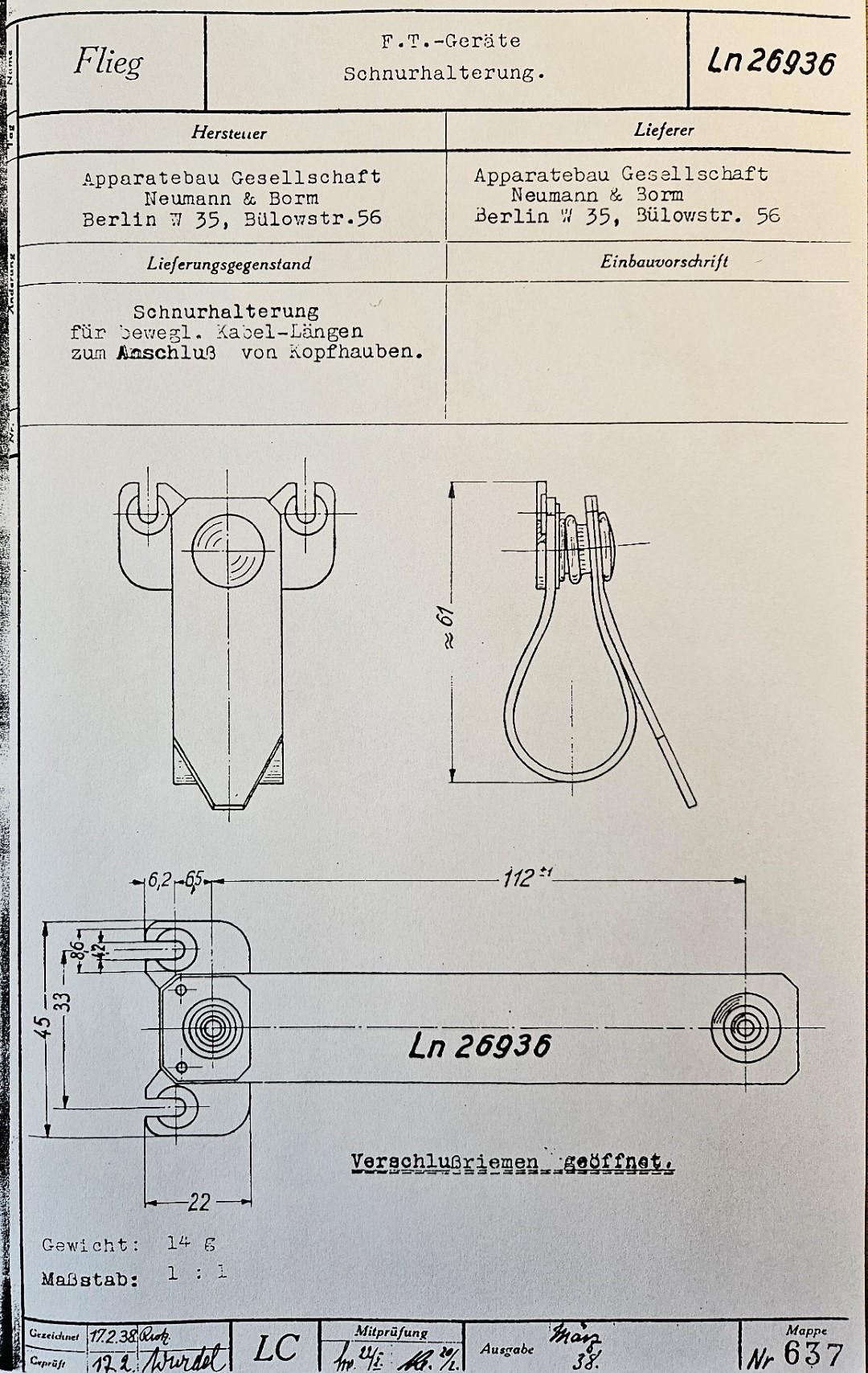 - Verwendung: Schnurhalterung für bewegliche Kabellängen zum Anschluss von Kopfhauben, Einbau im Cockpitbereich