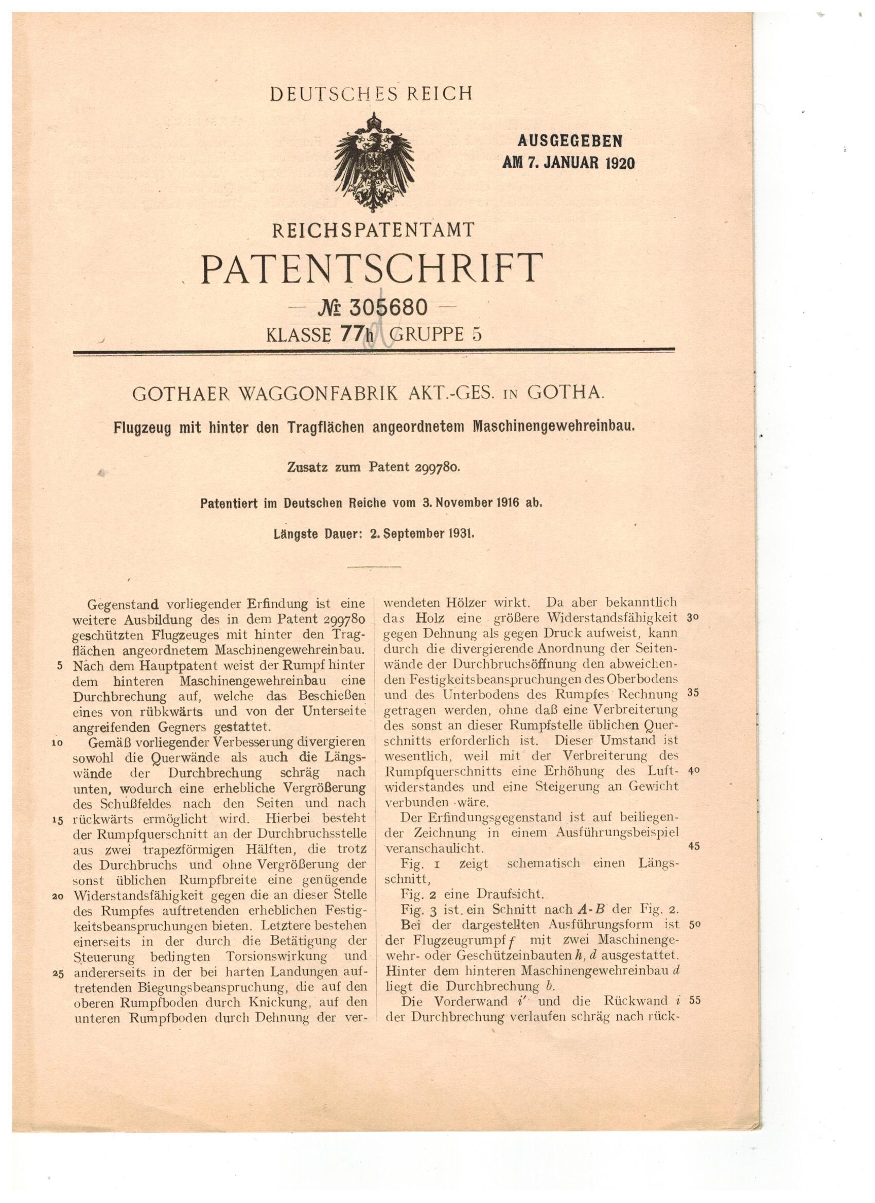 Patent Nr. 305680, der Gothaer Waggonfabrik Aktien-Gesellschaft in Gotha, vom 3.November 1916.