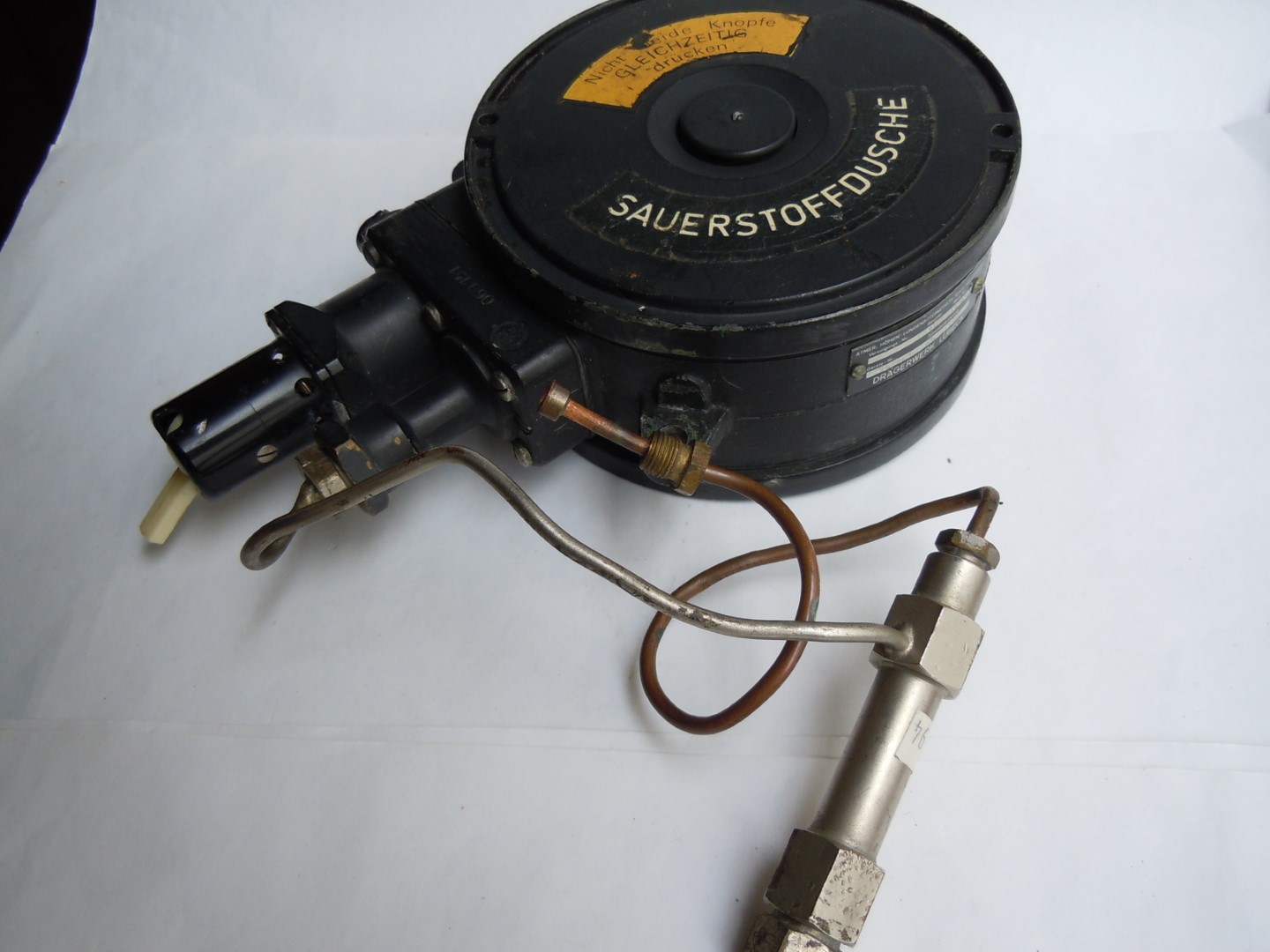 Angeboten wird dieser originale und sehr gut erhaltene Höhen-Lungenautomat (Umsteuerhöhenatmer /Sauerstoffdusche) aus der Nachkriegszeit.