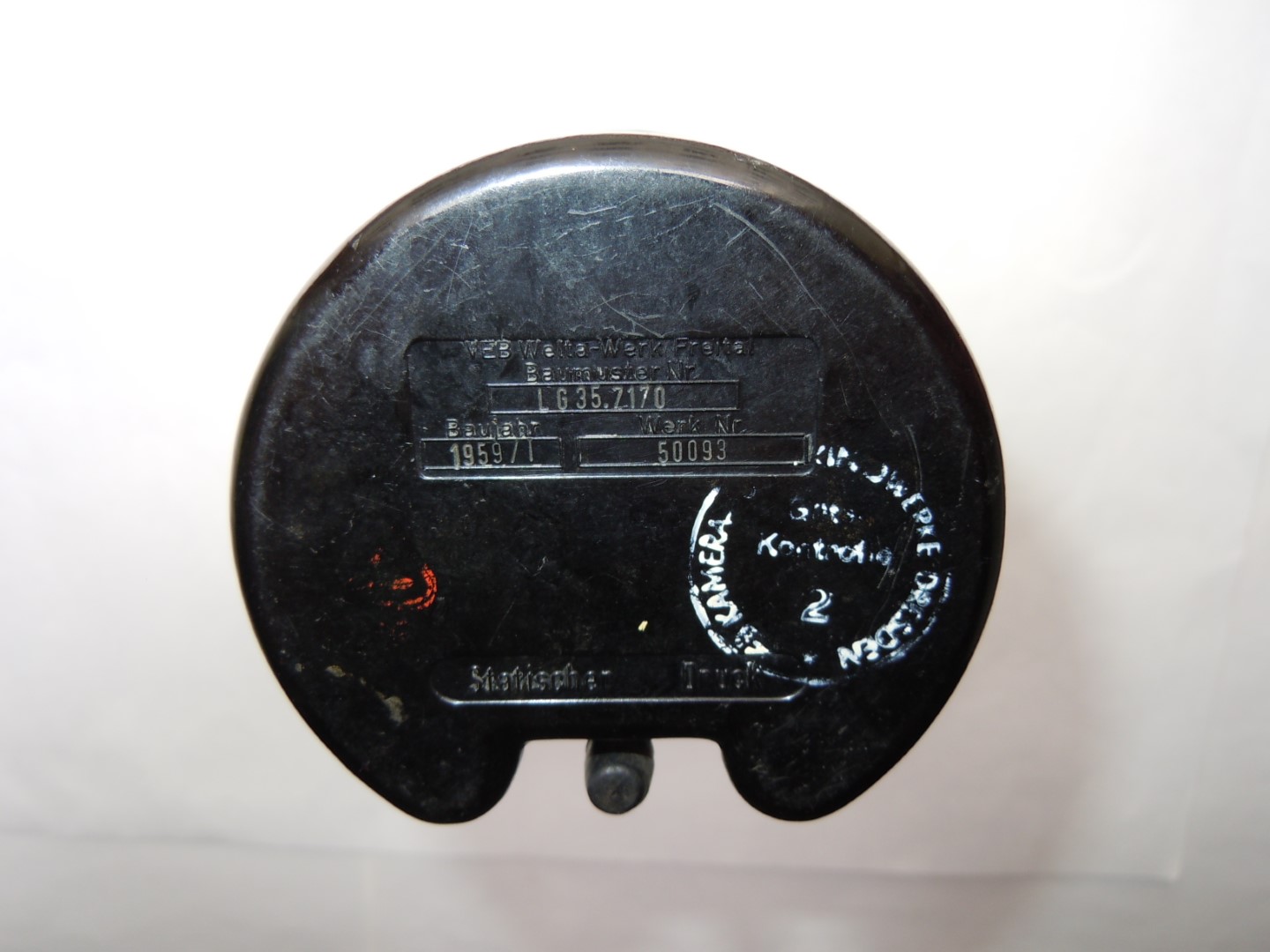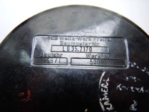 Auf der Rückseite befindet sich ein sehr schönes geprägtes Typenschild, sowie Abnahmestempel aus der Zeit.
